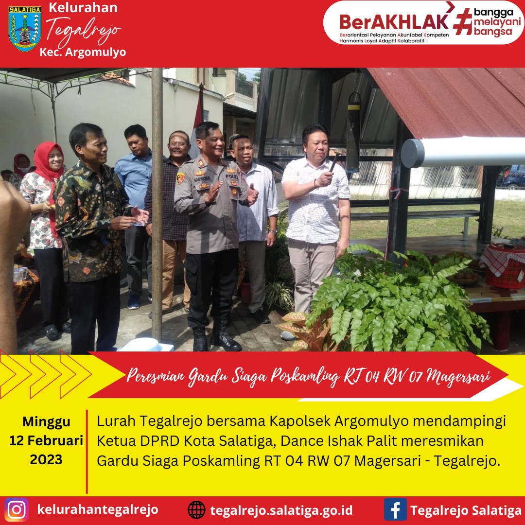 Lurah Tegalrejo bersama Kapolsek Argomulyo mendampingi Ketua DPRD Kota Salatiga, Dance Ishak Palit meresmikan Gardu Siaga Poskamling RT 04 RW 07 Magersari – Tegalrejo, Minggu 12/02/2023. Posted on 15 Februari 202315 Februari 2023 by tegalrejo2
