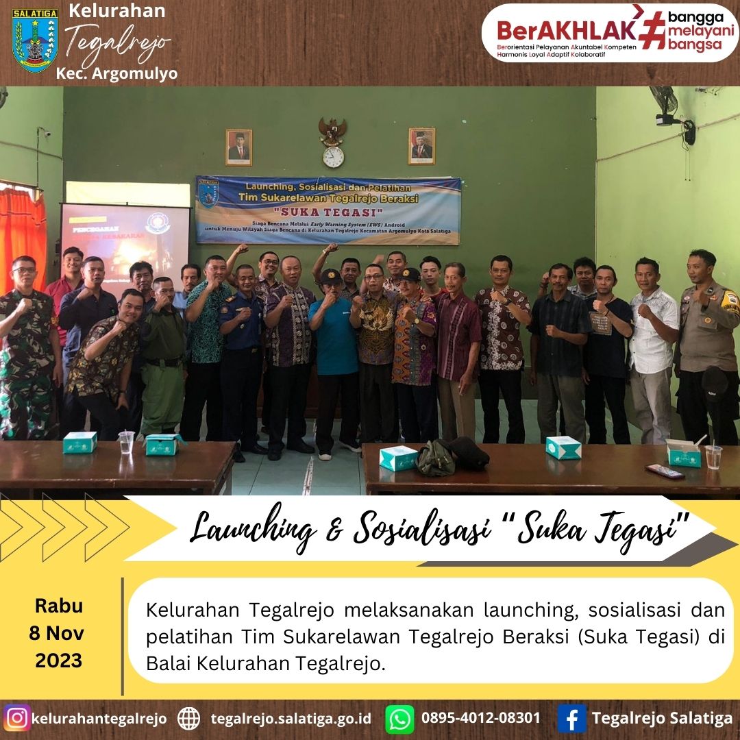 Kelurahan Tegalrejo melaksanakan launching, sosialisasi dan pelatihan Tim Sukarelawan Tegalrejo Beraksi (Suka Tegasi) di Balai Kelurahan Tegalrejo, Rabu 8/11/2023.